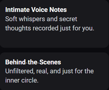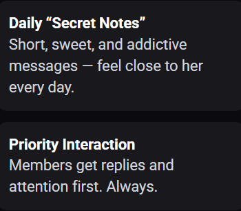 Exclusive photos, intimate voice notes, and daily secret messages.